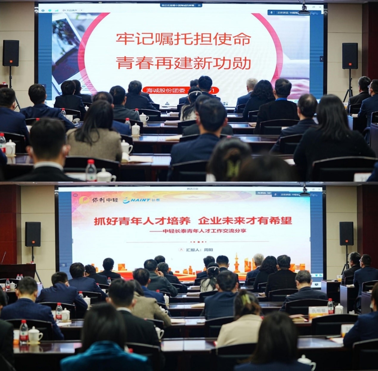 中國海誠團(tuán)委、中輕長泰團(tuán)委分別圍繞共青團(tuán)和青年工作進(jìn)行交流分享。