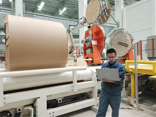 在馬來西亞玖龍項(xiàng)目的紙卷輸送包裝車間,一位工作人員正在通過電腦連接生產(chǎn)線進(jìn)行調(diào)試。他注意力高度集中,根據(jù)紙卷包裝運(yùn)行狀態(tài)有條不紊地調(diào)整著各項(xiàng)參數(shù),很快地,一個(gè)個(gè)紙卷像聽懂了他的命令一般,整齊有序地依次排隊(duì)入庫(kù)……